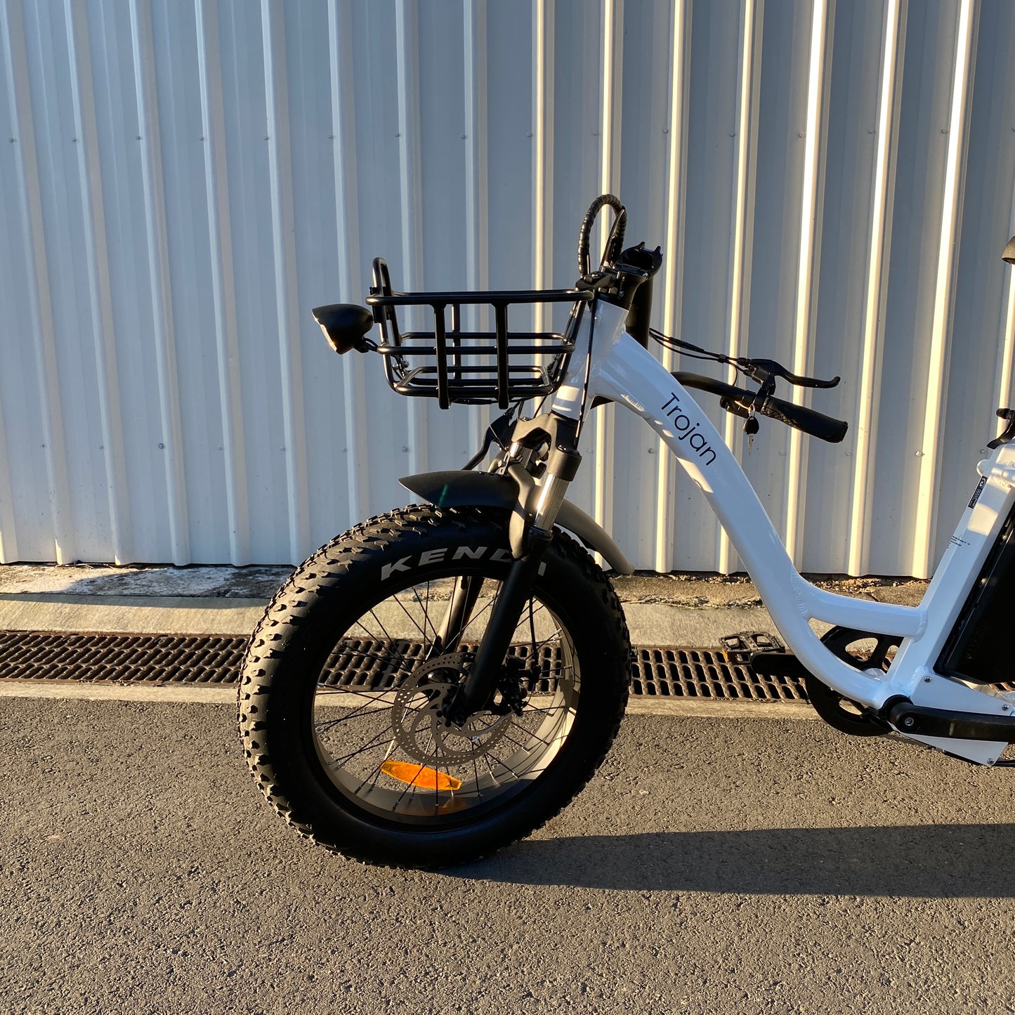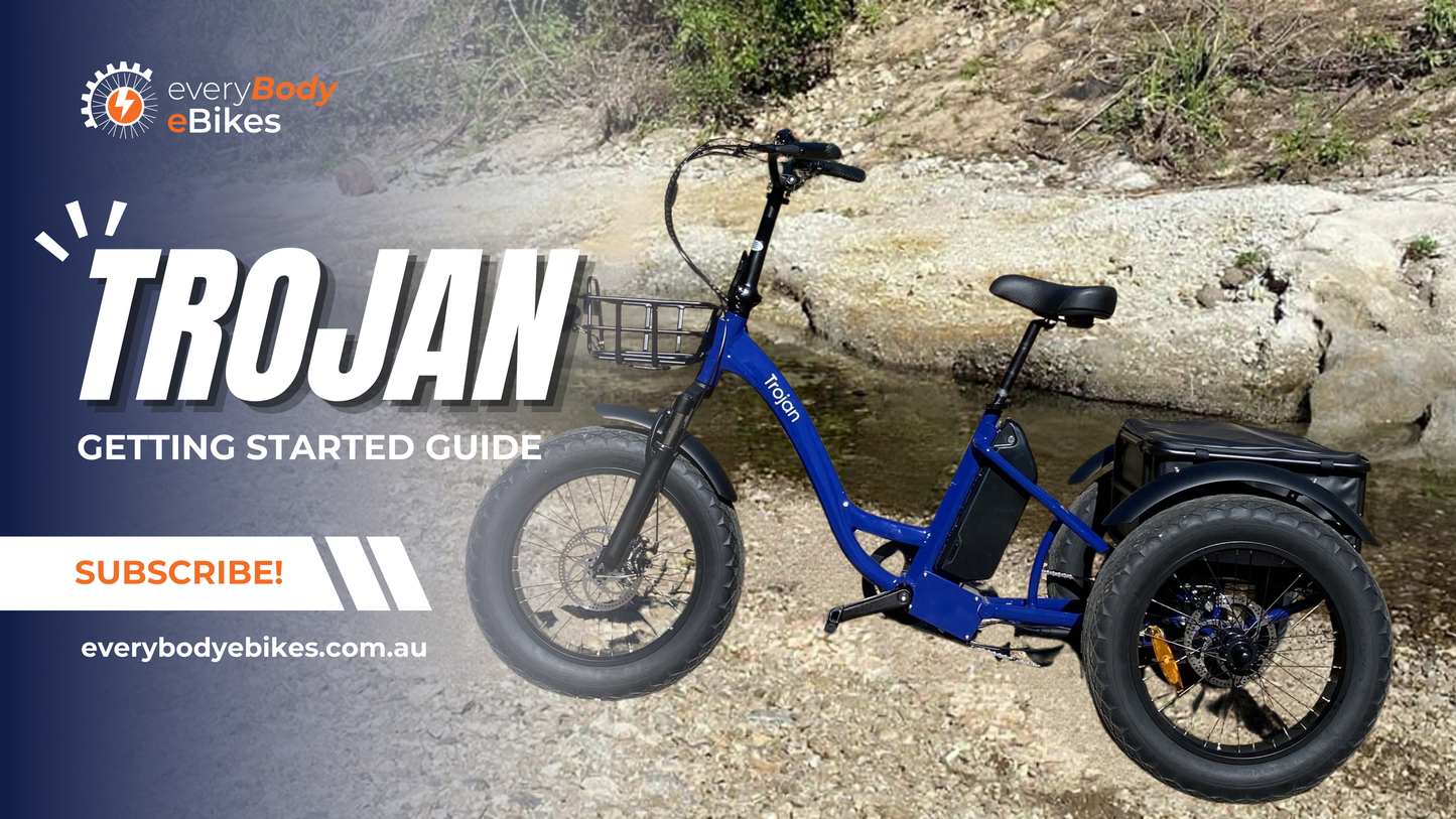 Our Fat Tyre Trojan boasts a powerful motor, chunky (or smooth!) tyres, and a huge carrying capacity between the frame mounted front basket and crate sized rear-basket. With components such as differential, 7 speed gearing, and disc brakes, it is designed to handle all types of terrain, this is sure to get you wherever you need to go. A fantastic choice for someone who needs some stability but still wants an adventure.