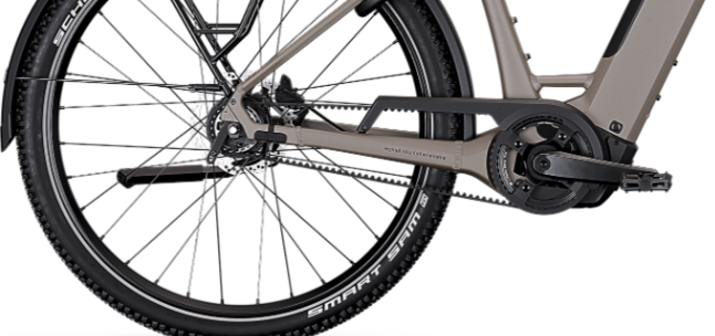 Comfort is central to the Entice 3 Excite Belt’s design, with an Allroad riser handlebar and ergonomic Ergon GA30 grips promoting an upright, relaxed riding position that’s easy on your back and wrists. An adjustable aluminium stem lets you fine‑tune fit, while a suspension seatpost and Selle Royal Vivo Ergo saddle help smooth out bumps. Front suspension with 100 mm travel, wide tyres, integrated lighting, and a robust rear rack all add to a comfortable, everyday‑ready ride.